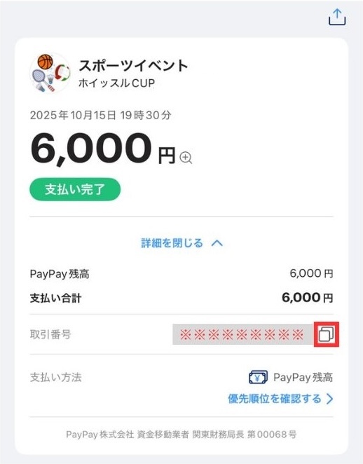 ※取引番号の右側の「□」マークをタップすると番号をコピーできます。