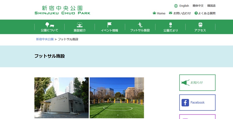新宿中央公園フットサル施設|都会のオアシスで楽しむ開放的なプレー